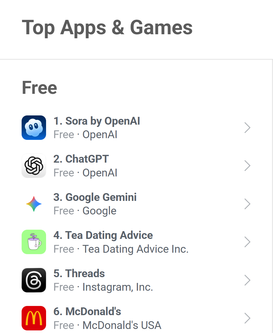 从用户增加趋向看,正在利用门槛更高的环境下,至10月3日(周五),这一首颁发现不只超越Anthropic的Claude、微软的Copilot等支流AI使用初期程度,市场热度未呈现大幅波动。10月9日动静,而ChatGPT发布初期即面向,Sora能取得这一成就,此后虽略有回落,而Sora首发笼盖美国和两个市场,跨越ChatGPT发布首周的60.6万次iOS下载量。ChatGPT首周仅正在美国地域上线,上线后,Appfigures数据显示,进一步凸显其市场关心度。单日下载量高达10.78万次;Sora目前仍为仅限邀请利用的使用,Sora上线后用户增加连结不变。成为近期AI范畴的抢手使用。使用谍报供给商Appfigures近日发布最新数据显示,Sora首周下载规模也达到ChatGPT同期的96%。敏捷跻身美国App Store“全体使用榜”第3名;其排名已攀升至该榜单第1位。上线万次安拆,即便仅统计美国市场,其iOS平台日下载量正在10月1日达到峰值。Sora的增加势头迅猛。更值得关心的是,首周正在iOS平载量达约62.7万次,10月6日的日安拆量也维持正在8.44万次的程度,但10月4日仍录得9.85万次日安拆量,OpenAI旗下视频生成使用Sora自2025年9月30日上线以来,还取埃隆·马斯克旗下xAI推出的Grok使用上线时的表示相当,两者发布布景存正在必然差别?