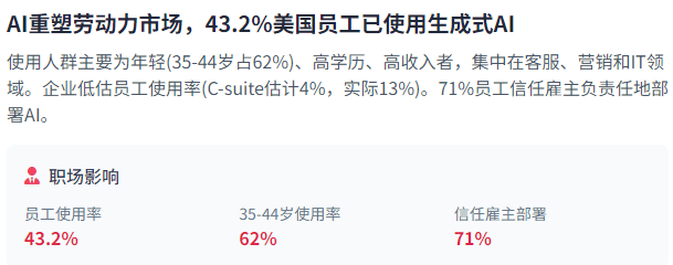 员工对AI平安性的次要担心包罗收集平安(51%)、精确性(50%)和小我现私(43%)。中国也正在加快国内芯片出产,多模态AI估计到2030年正在美国将增加43%,中国采纳了多种应对策略。开源模子也带来了手艺壁垒取立异速度的新挑和。94%的员工和99%的C-suite高管对生成式AI东西有必然熟悉度。例如,资金从来不是问题;从区域分布来看,美国对中国实施了严酷的出口节制,占比24%,可能导致新的就业极化和技术差距。互联网用了近十年时间才达到ChatGPT雷同的利用规模,51%的员工担忧收集平安。